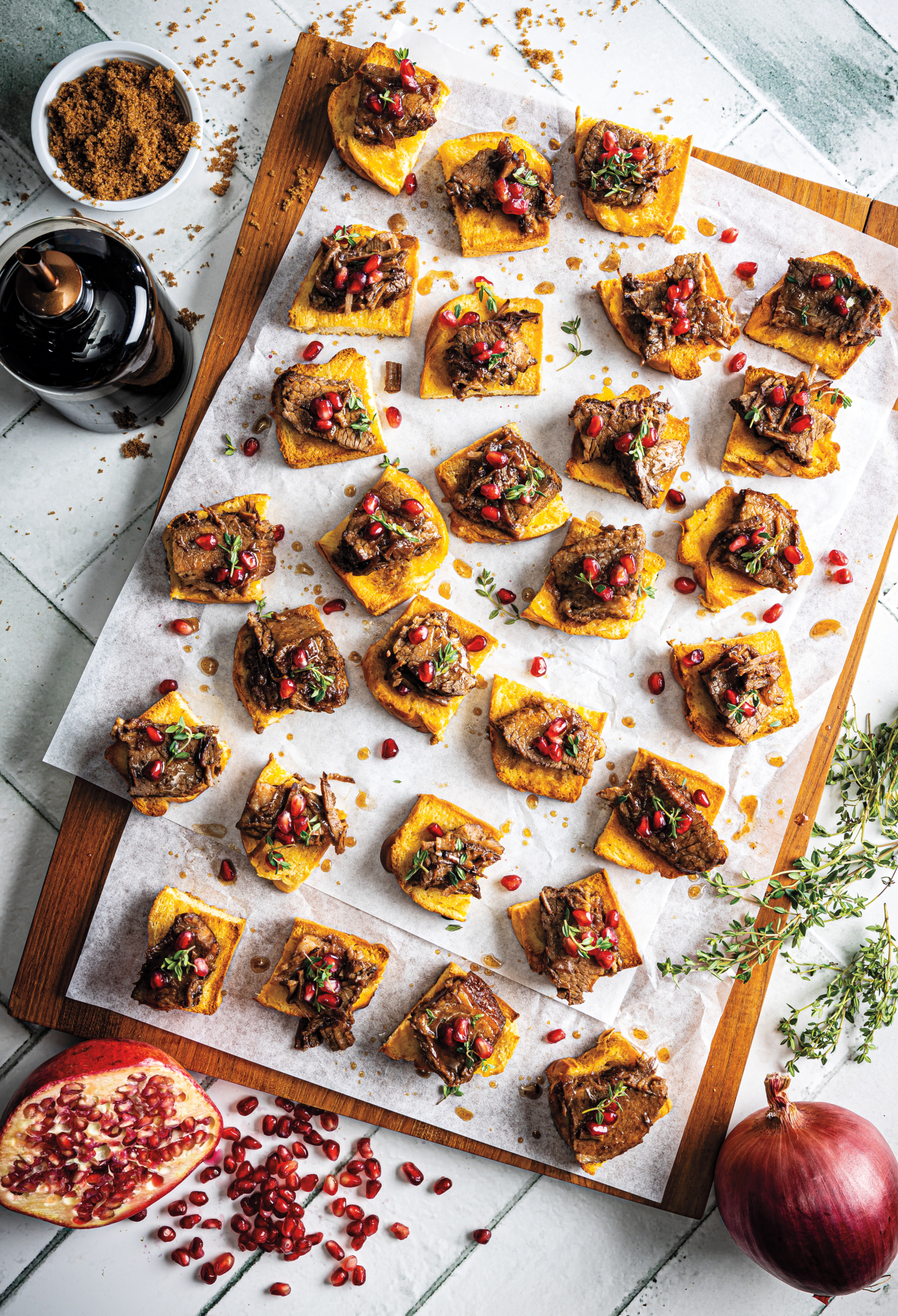 Balsamic-Brown Sugar Brisket Bites with Pomegranate & Onion