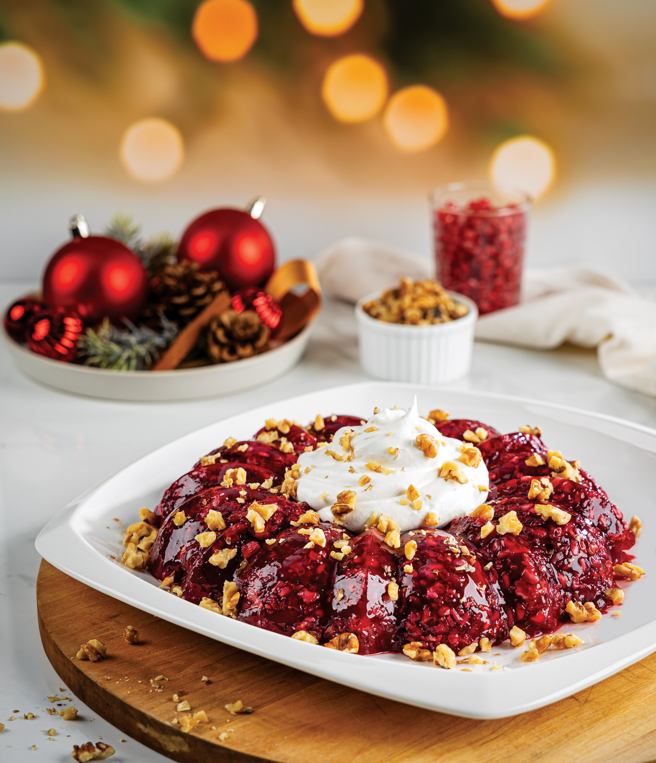 - In food processor, pulse cranberries until small pieces remain. Stir pomegranate arils, walnuts, lime zest and cranberries into gelatin mixture; pour into 5-cup ring mold or 6-cup Bundt® pan. Cover mold tightly with plastic wrap; refrigerate 3 hours or until set