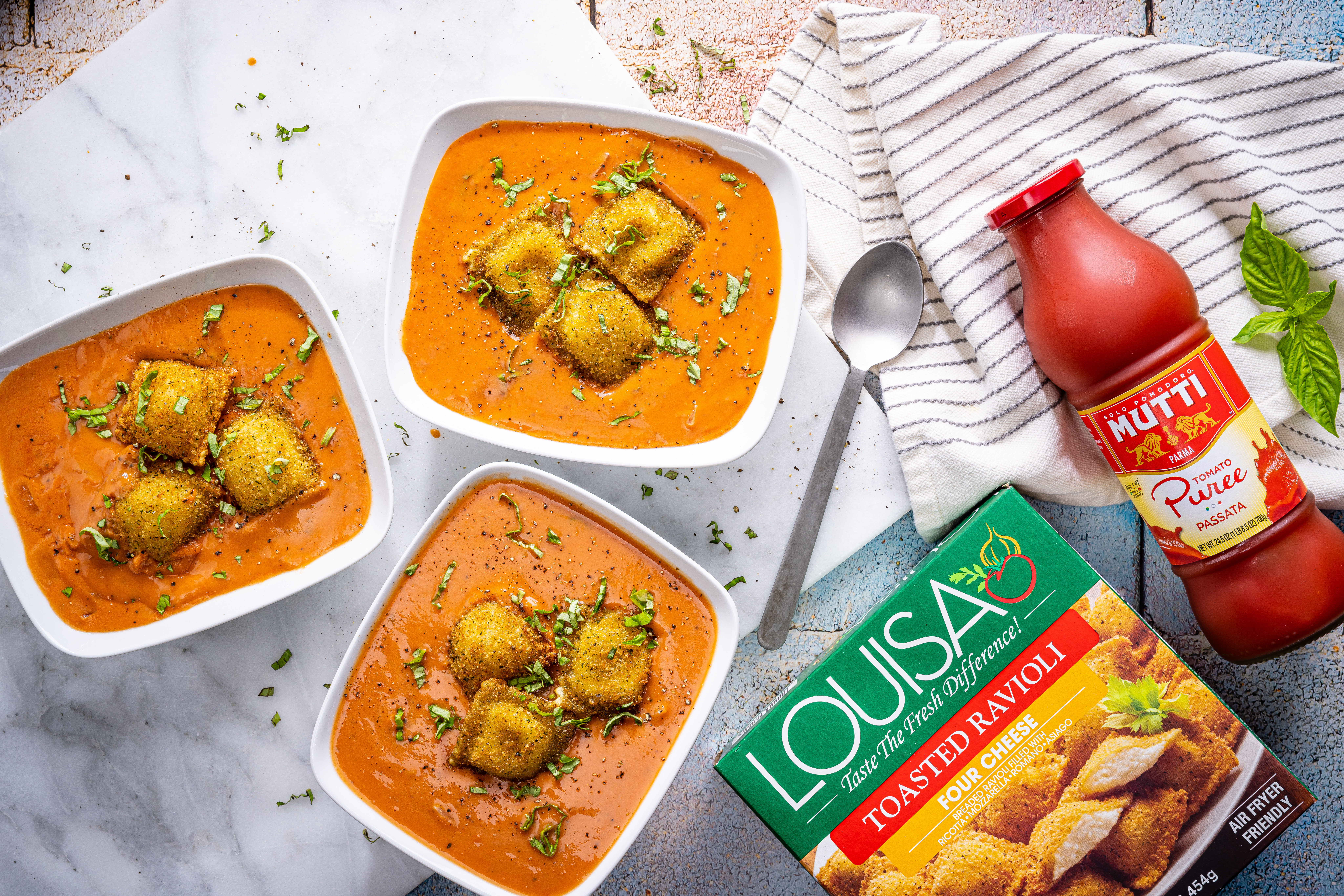 Creamy Tomato Soup with Crispy Ravioli