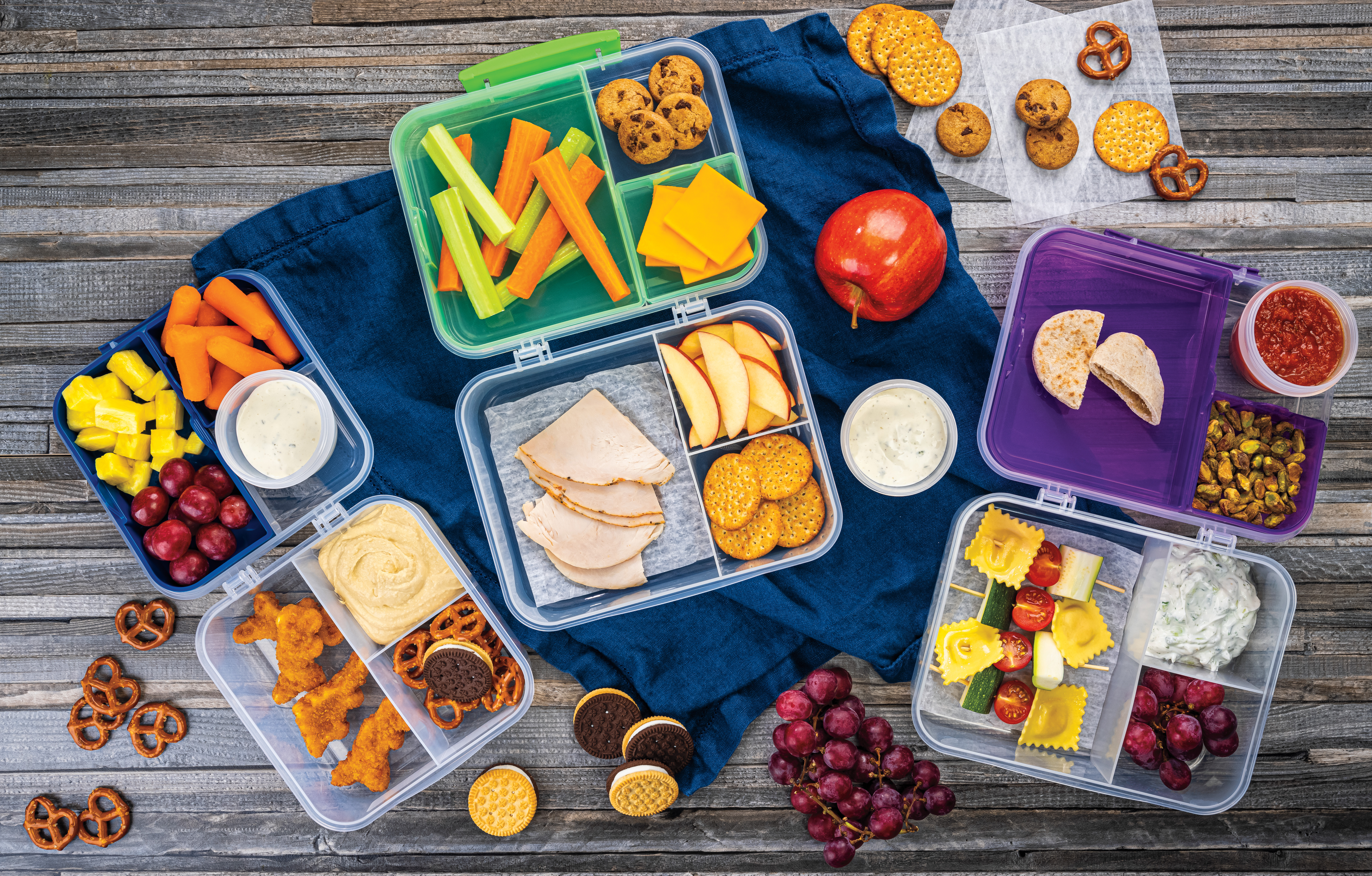 - Fill containers by dividing cheese, sauce, vegetables and 2 bagels into compartments; seal with lids and refrigerate up to 5 days.
